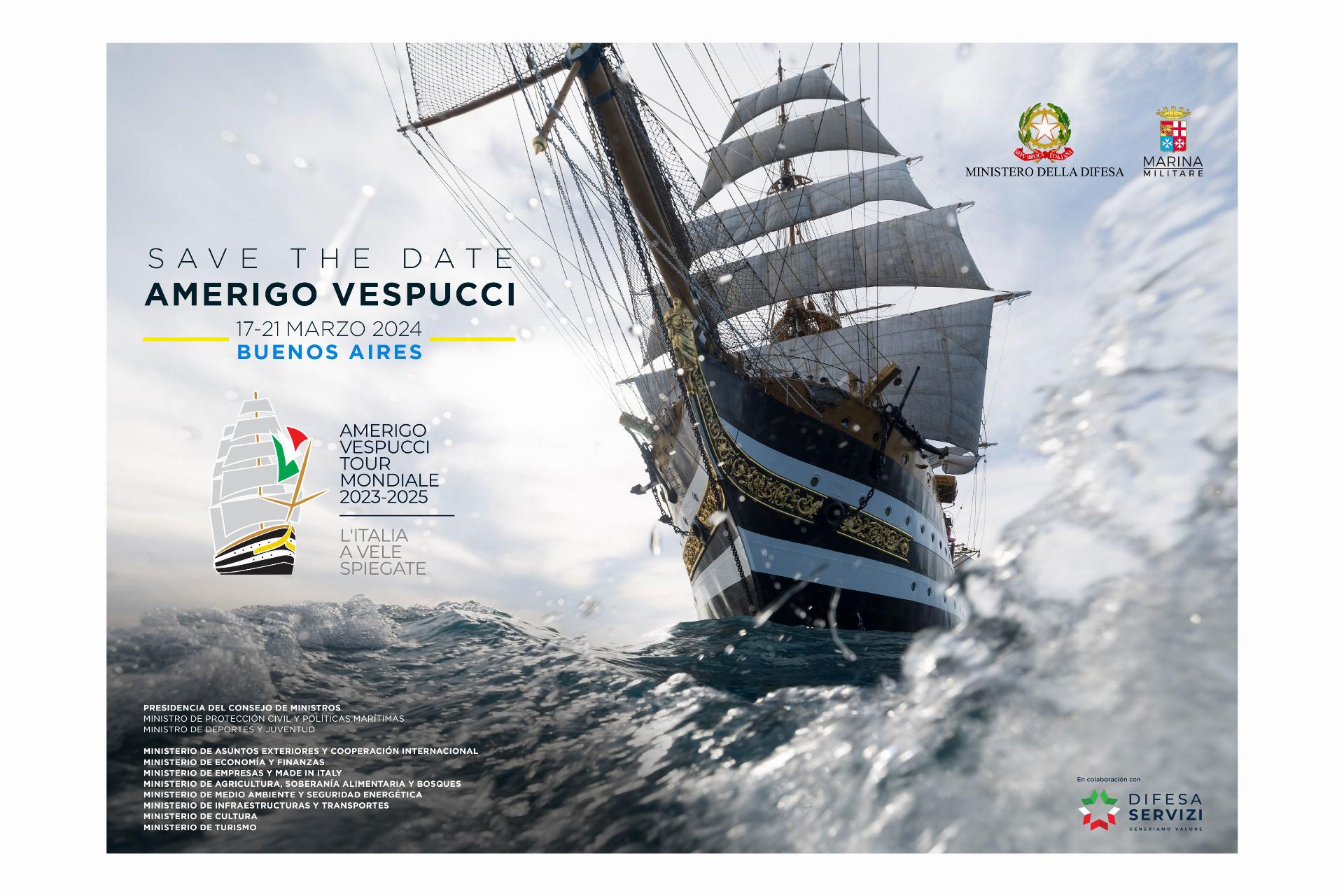 «No quien comienza sino quien persevera» es el lema del Buque Escuela Amerigo Vespucci, la Unidad más antigua en servicio de la Marina Militar italiana, que cumplió 93 años el pasado 22 de febrero y hará escala en el puerto de Buenos Aires entre el 17 y el 21 de marzo de 2024, por segunda vez en la historia, luego de más de 70 años desde su primera incursión en el marco de la campaña de adiestramiento de 1952.