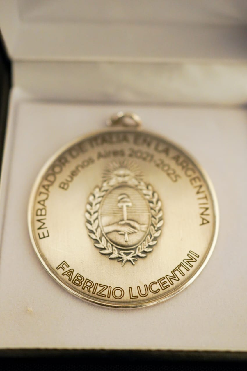 El Secretario Darío Genua homenajeó, finalmente, al Embajador Fabrizio Lucentini con una medalla como muestra de gratitud y aprecio por el alto nivel de colaboración alcanzado durante su mandato en Argentina.