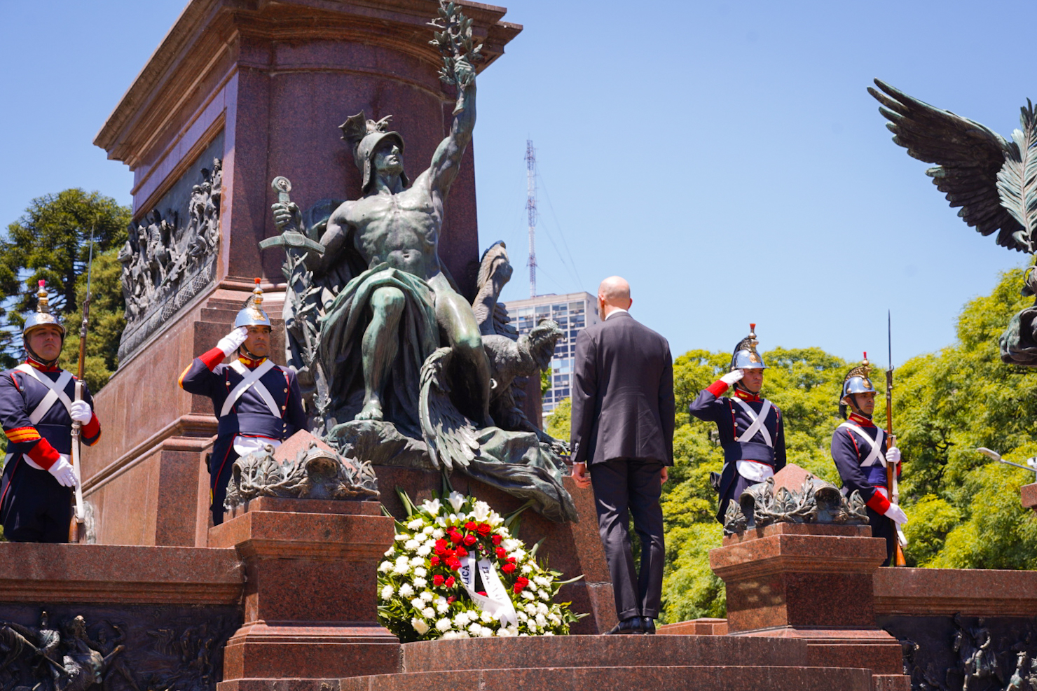Successivamente all’atto, l’Ambasciatore Nicoletti ha reso omaggio al Libertador Generale José de San Martín mediante la tradizionale offerta floreale ai piedi del Monumento a lui dedicato.